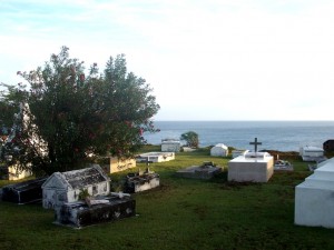 Kathy and Fred weren’t feeling well when we arrived, so we went with Craig and Liz from Salida, to explore the island. The old harborfront was long ago reclaimed by the sea during a hurricane. Now you have a steep walkup to get to town, and the fort. There is a medical college here, and about a half dozen chinese restaurants. Figure that one out. Of course we coudn’t wait to eat Chinese at Sonny’s Cantonese restaurant. Very good. After that we strolled through town. Everyone waves at us first, something that hasn’t happened that often on other islands. Its a very nice feeling. The town has nice paved streets. There is definitely a sense of pride here. We walked past the old cemetary, and down to Kings Well. King’s Well is a restaurant/hotel owned by Laura and Win. They owned a restaurant on Long Island New York, before deciding to make a life in the Caribbean. Dinner is by reservation. We had dropped in unexpectedly, but Laura gave us a quick tour and invited us to come back the next day for a swim in their fresh water pool.